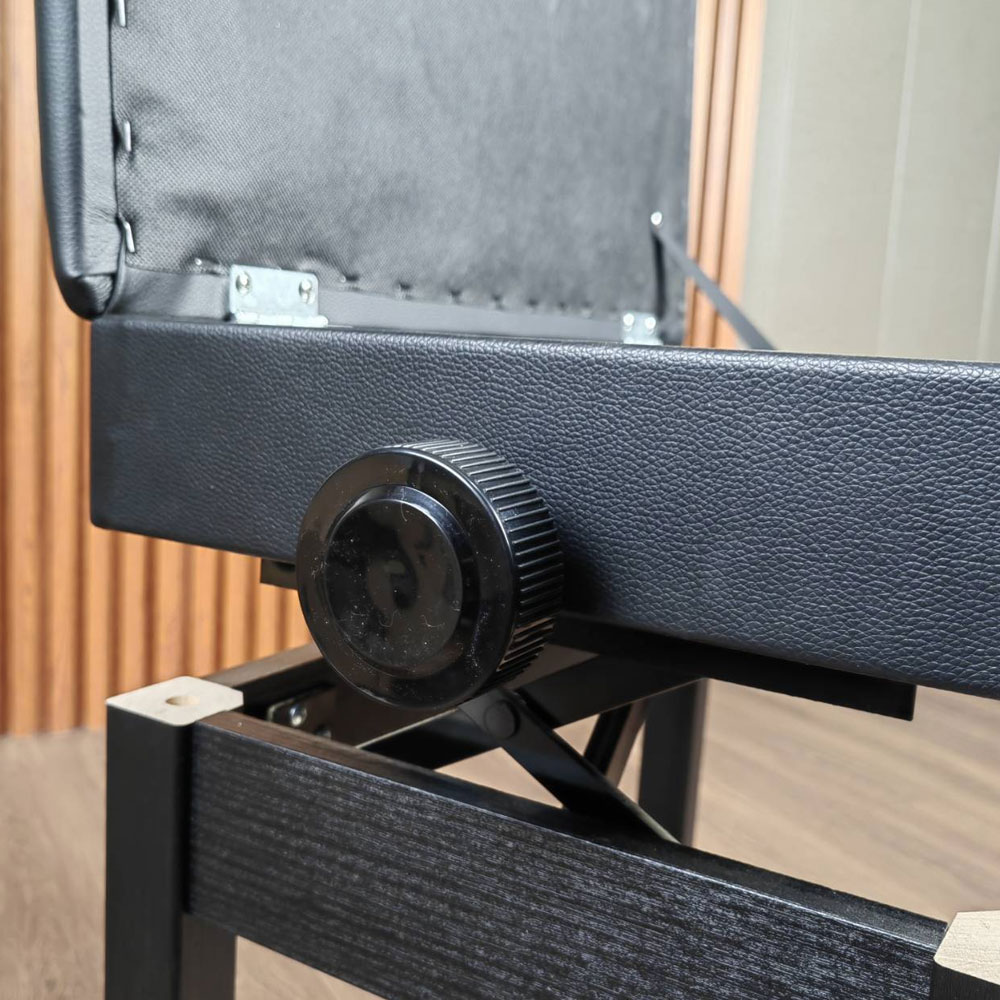 ระบบปรับระดับความสูง-ต่ำ (Adjustable Height): มาพร้อมปุ่มหมุนด้านข้างที่แข็งแรง สามารถปรับระดับความสูงให้เหมาะสมกับสรีระของผู้เล่นและระดับของคีย์เปียโนได้อย่างแม่นยำ